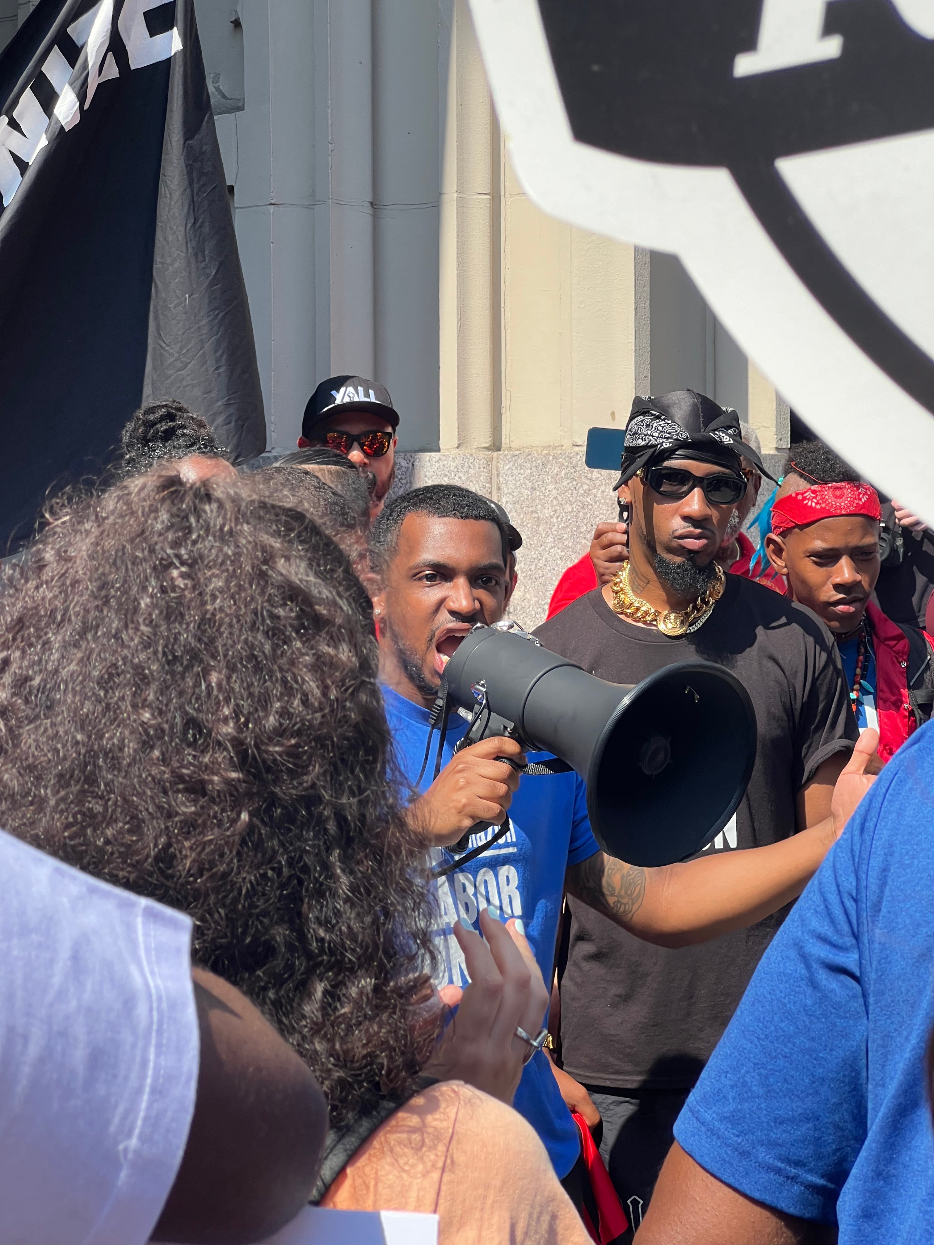 Derrick forgot to mention that he's a badass. We're at the Amazon Labor Union's march for recognition in New York City. And this is a snapshot of how they got here.