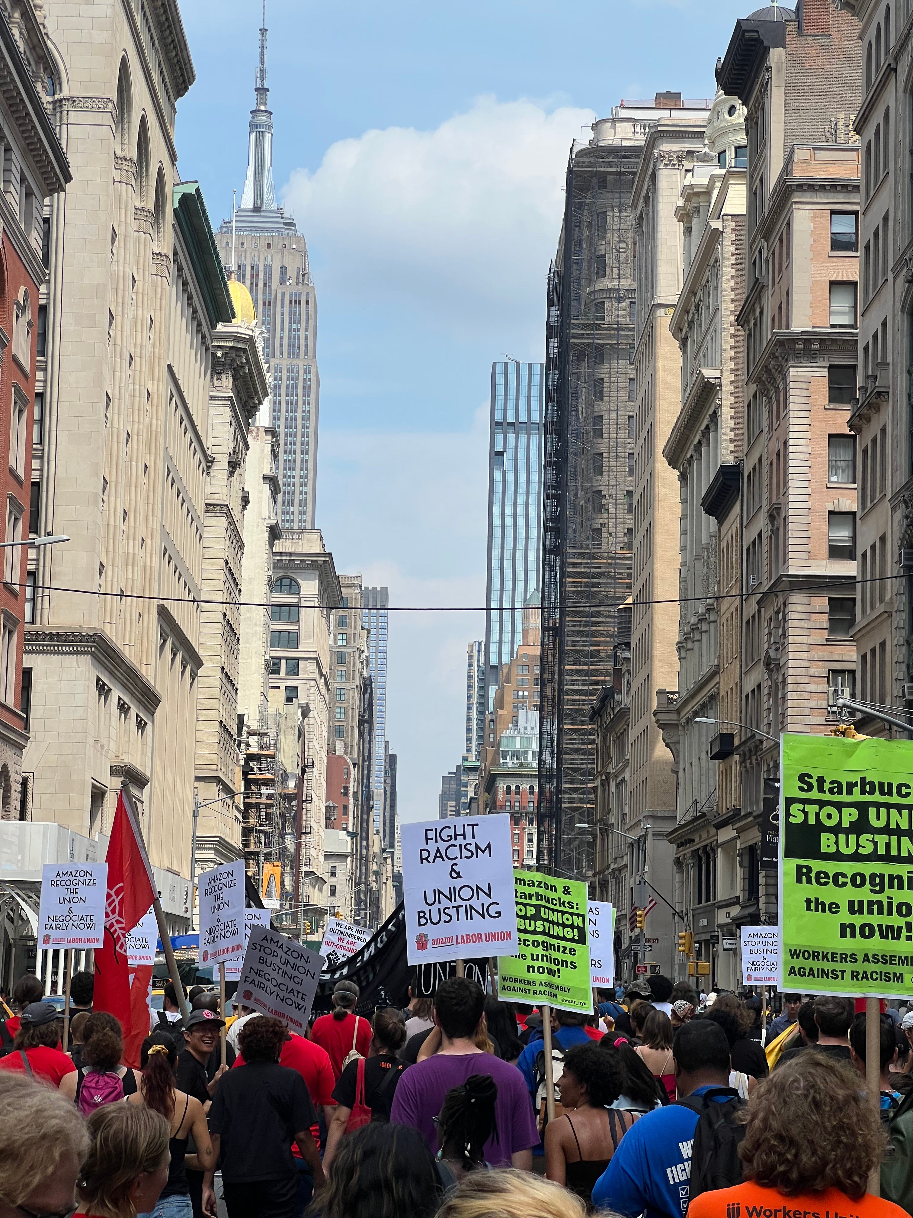 Me and my camera-woman/dear sweet girlfriend, Jess, went to catch a glimpse of the action in New York City on Labor Day. The Amazon Labor Union joined with Starbucks Workers United and worker-led unions representing REI, Trader Joes, Apple, Google and others in a march through downtown Manhattan for union recognition.